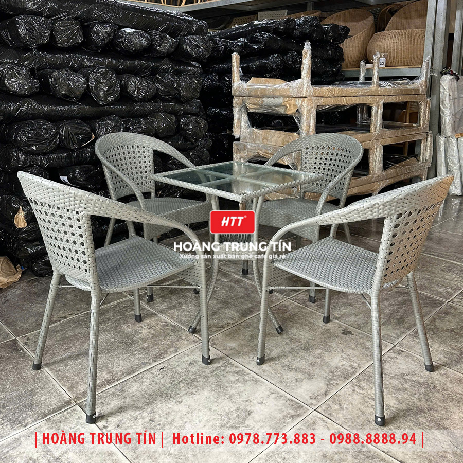 Bàn ghế cafe đan nhựa giả mây HTT-051