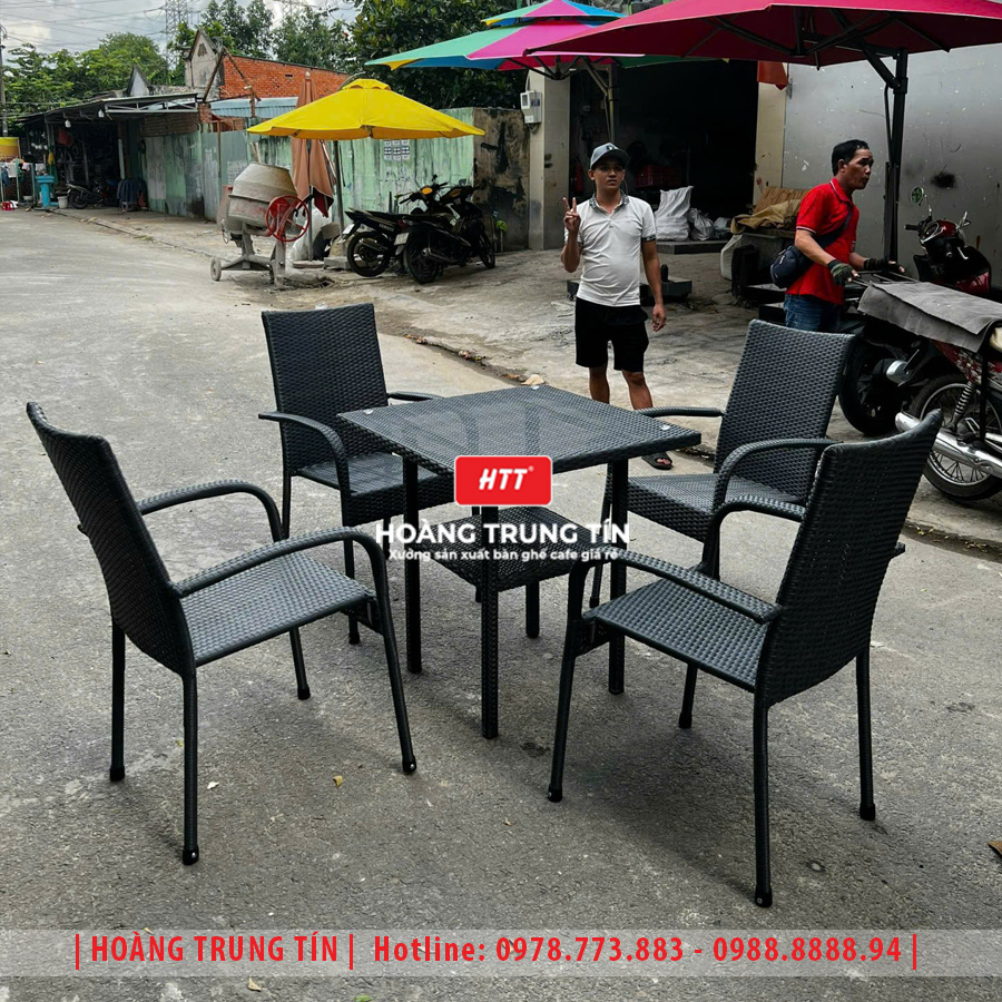 Bàn ghế cafe đan nhựa giả mây HTT-052