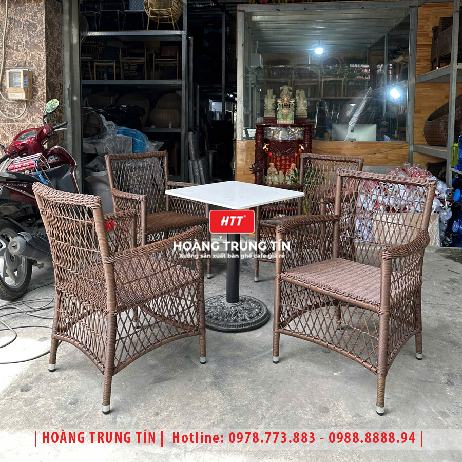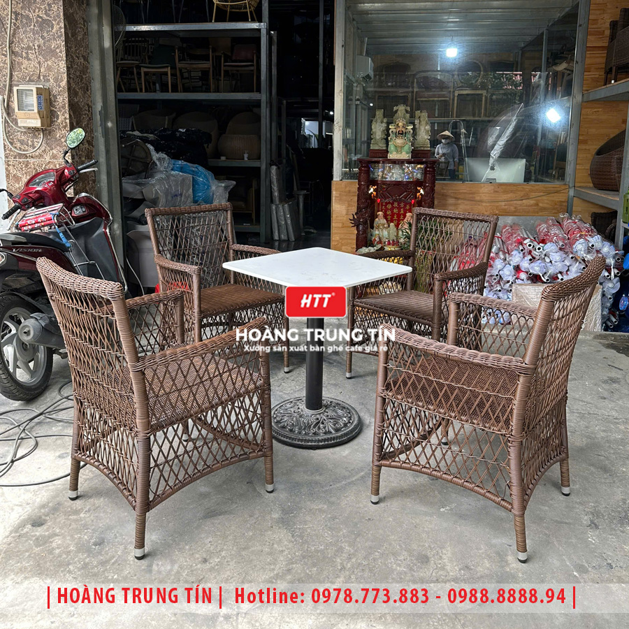 Bàn ghế cafe đan nhựa giả mây HTT-053