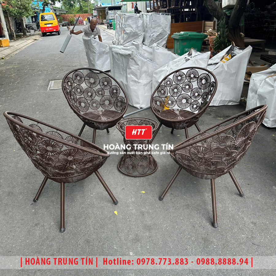 • Bàn ghế cafe đan nhựa giả mây HTT-055