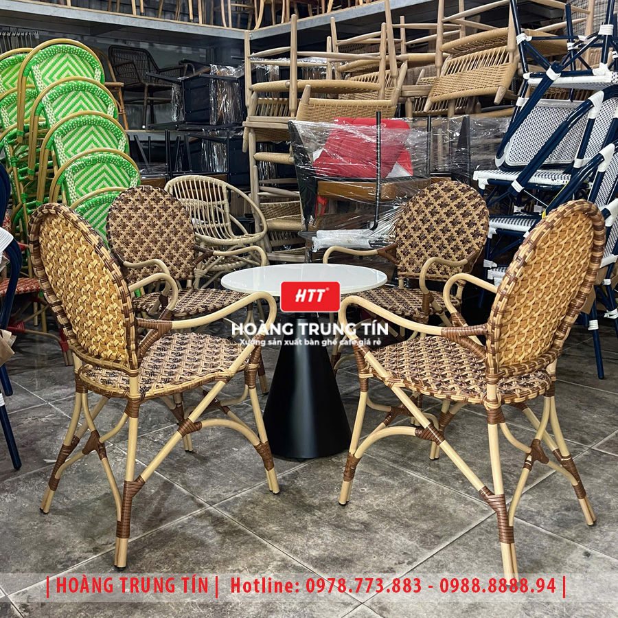 Bàn ghế cafe đan nhựa giả mây HTT-062
