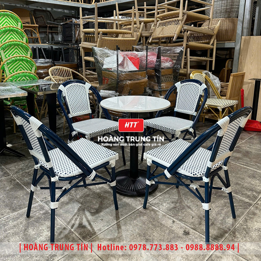 • Bàn ghế cafe đan nhựa giả mây HTT-063
