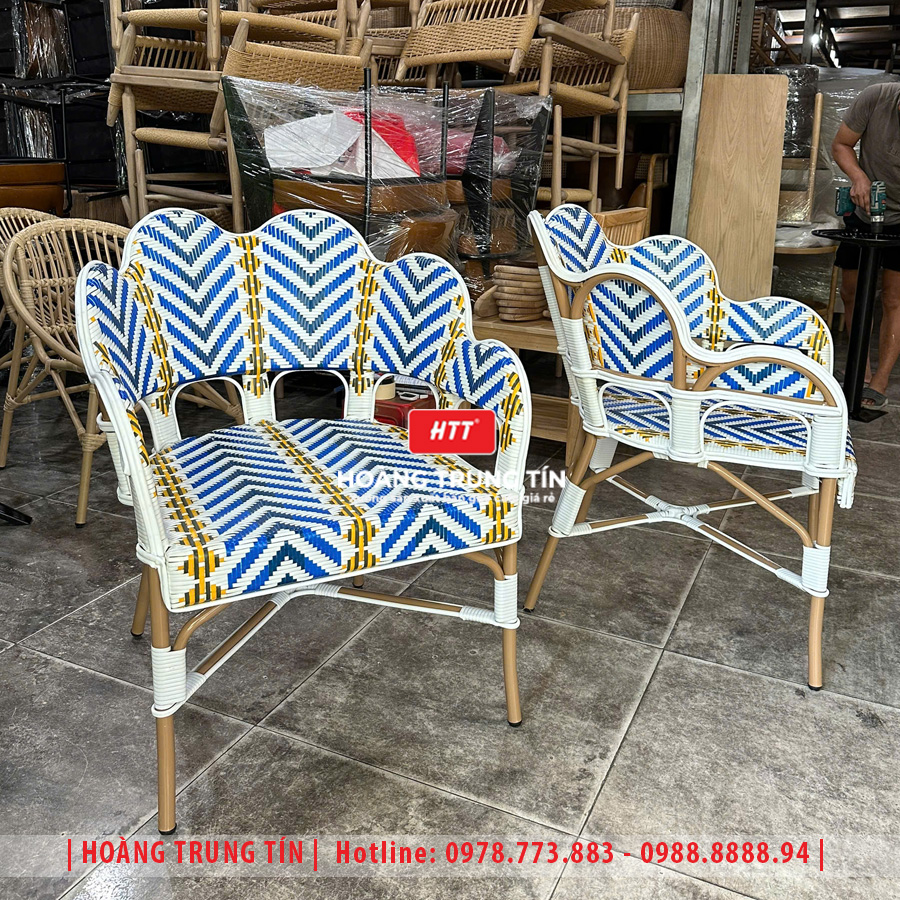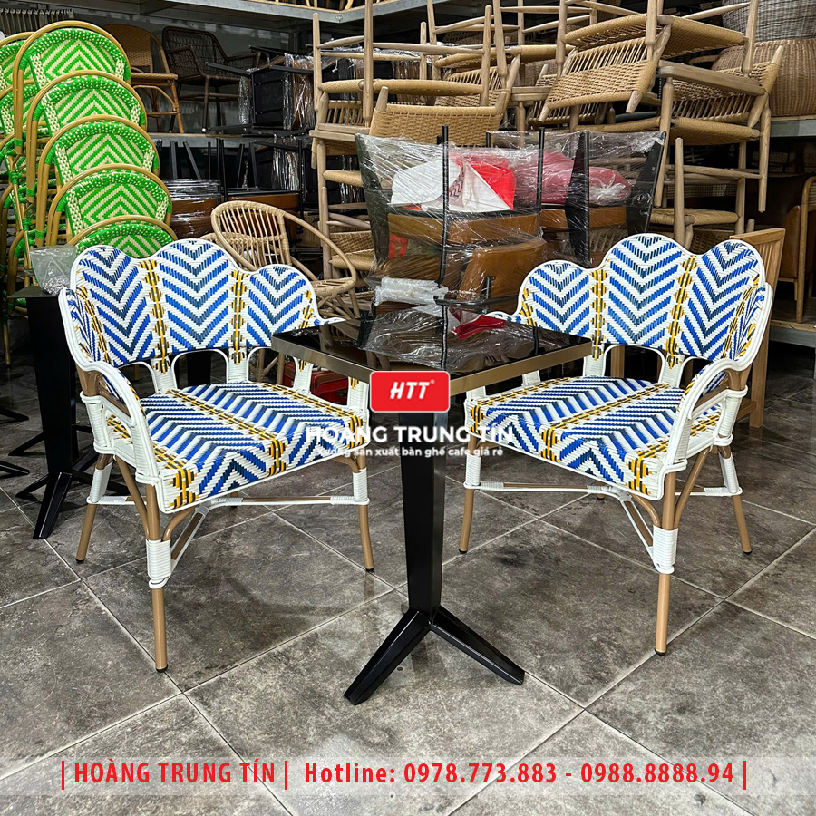 • Bàn ghế cafe đan nhựa giả mây HTT-066