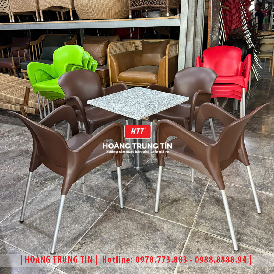 Bàn ghế nhựa đúc chân nhôm HTT08