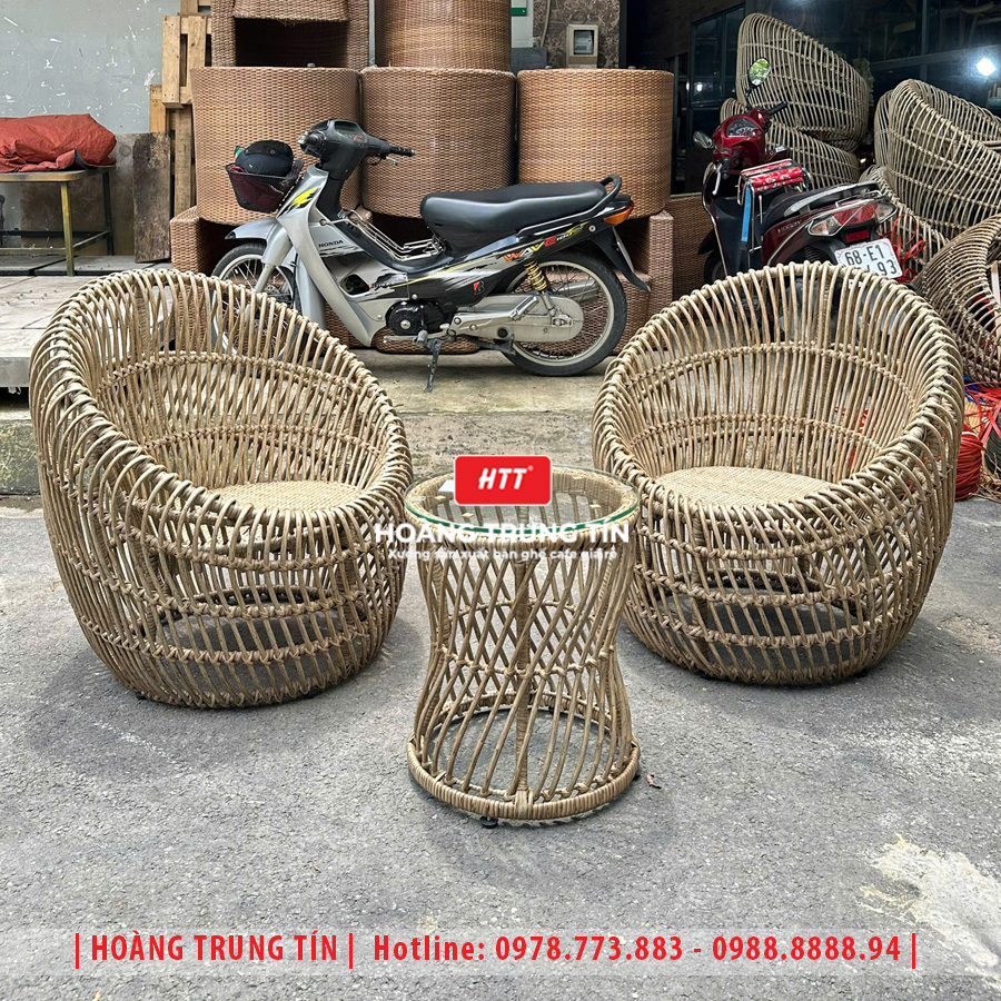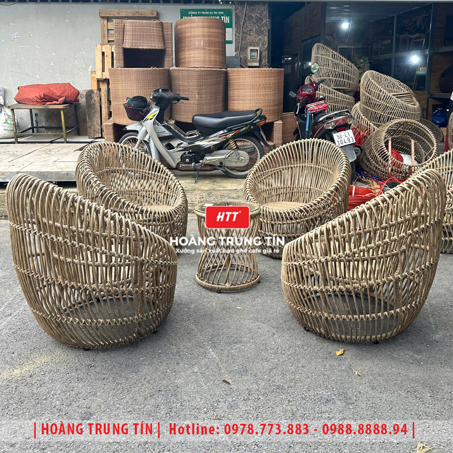• Bàn ghế trứng đan nhựa giả mây HTT24