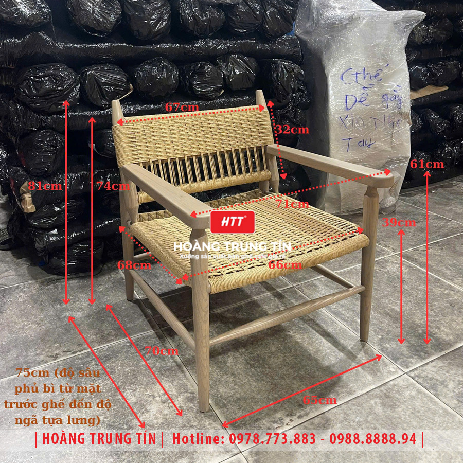 Ghế cafe gỗ đan dây cói HTT-01