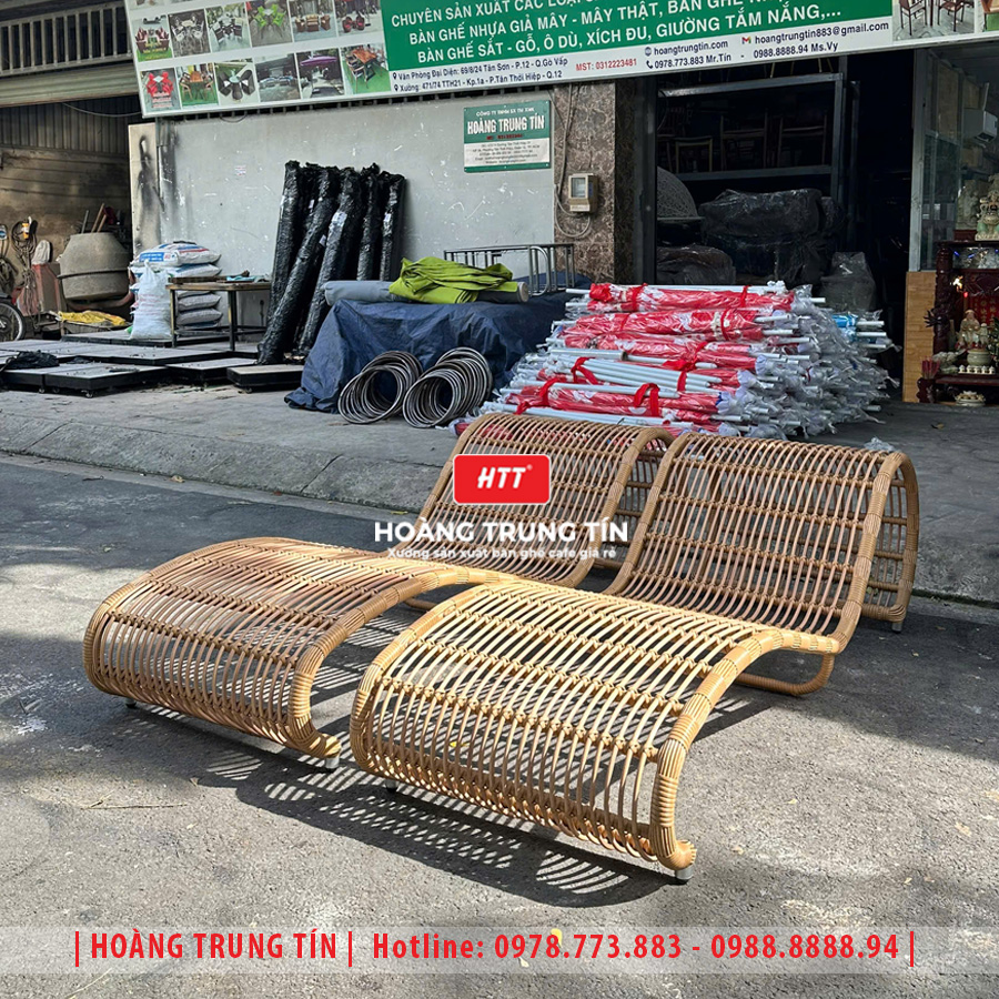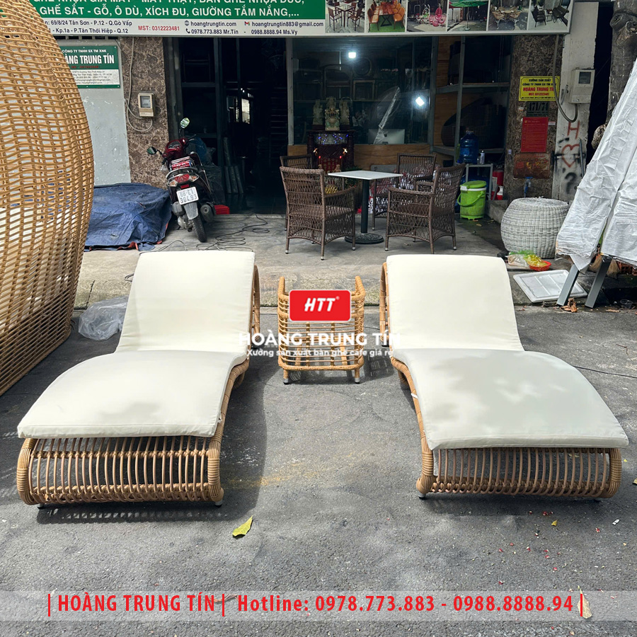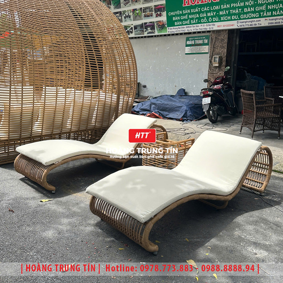 Giường tắm nắng đan nhựa giả mây HTT029