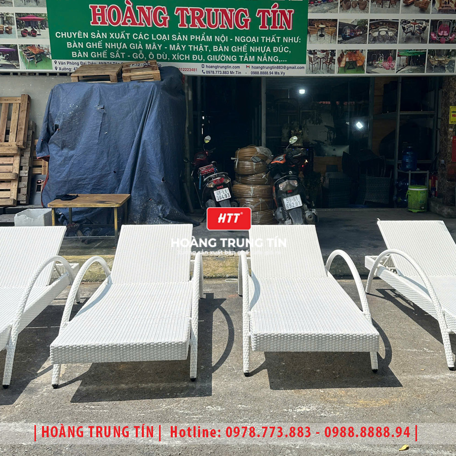 • Giường tắm nắng đan nhựa giả mây HTT030